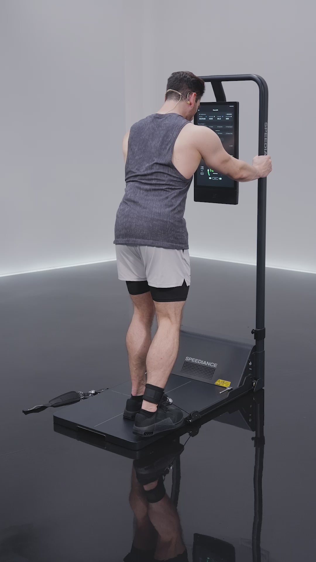 La pantalla de Speediance te guía en cada movimiento con entrenadores reales, conteo de repeticiones, correcciones automáticas y rutinas personalizadas.