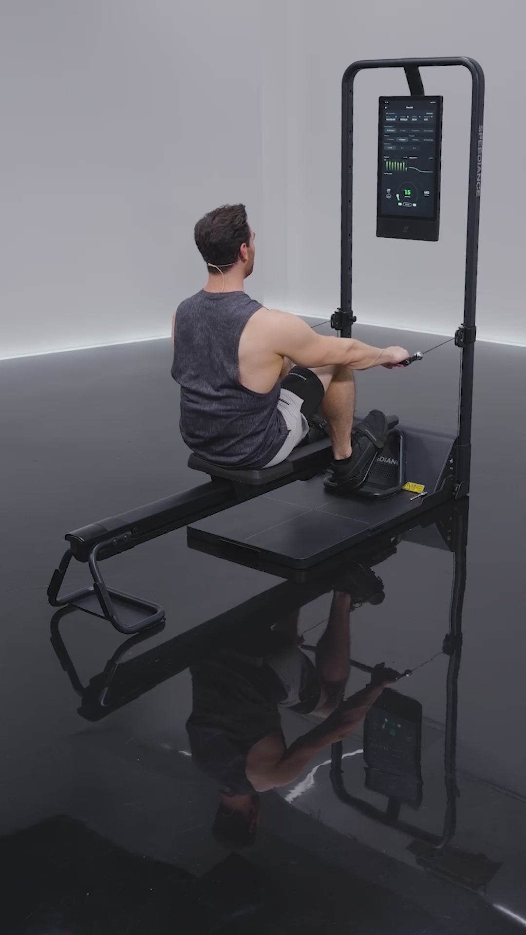 La pantalla de Speediance te guía en cada movimiento con entrenadores reales, conteo de repeticiones, correcciones automáticas y rutinas personalizadas.