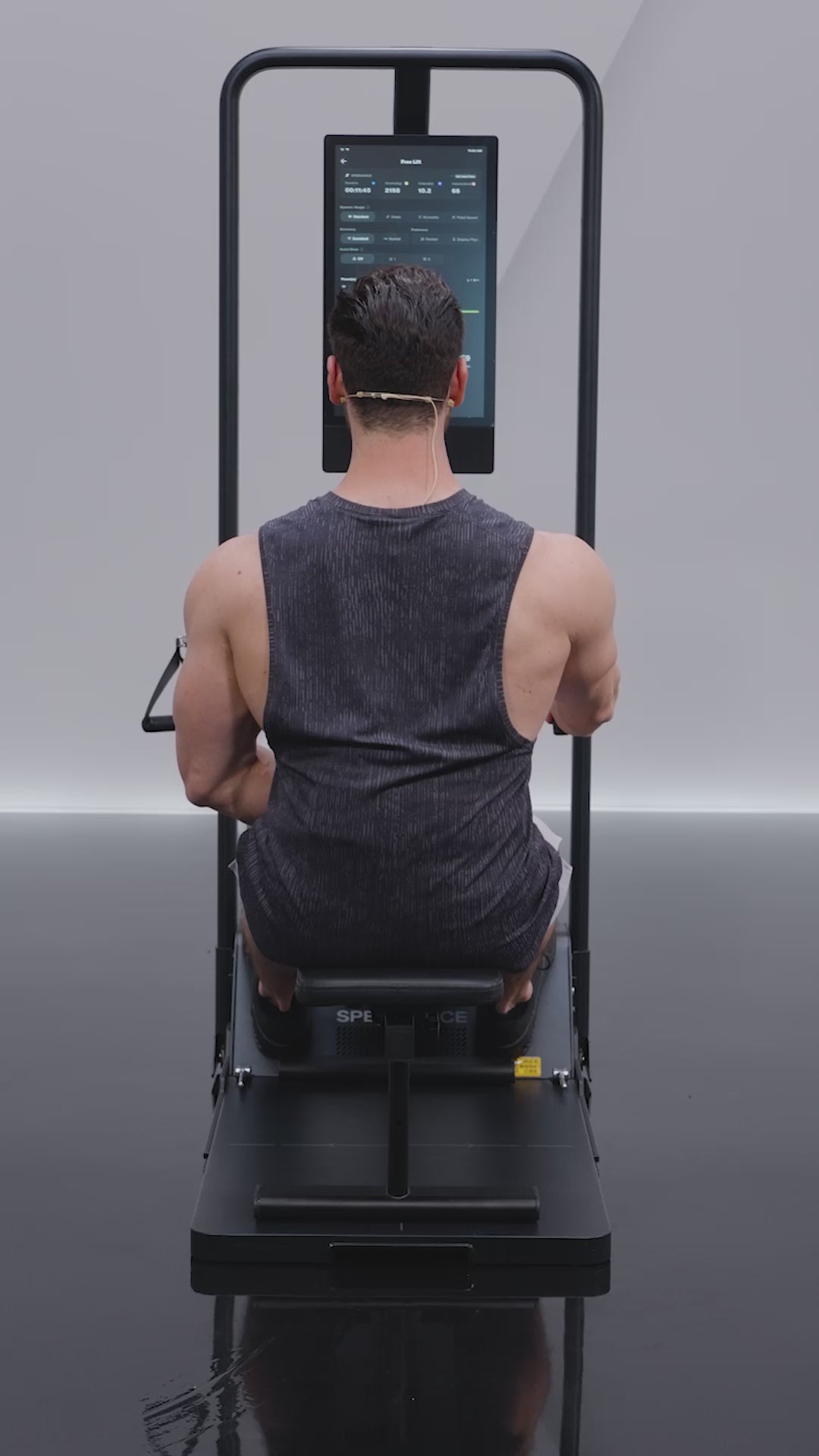 La pantalla de Speediance te guía en cada movimiento con entrenadores reales, conteo de repeticiones, correcciones automáticas y rutinas personalizadas.